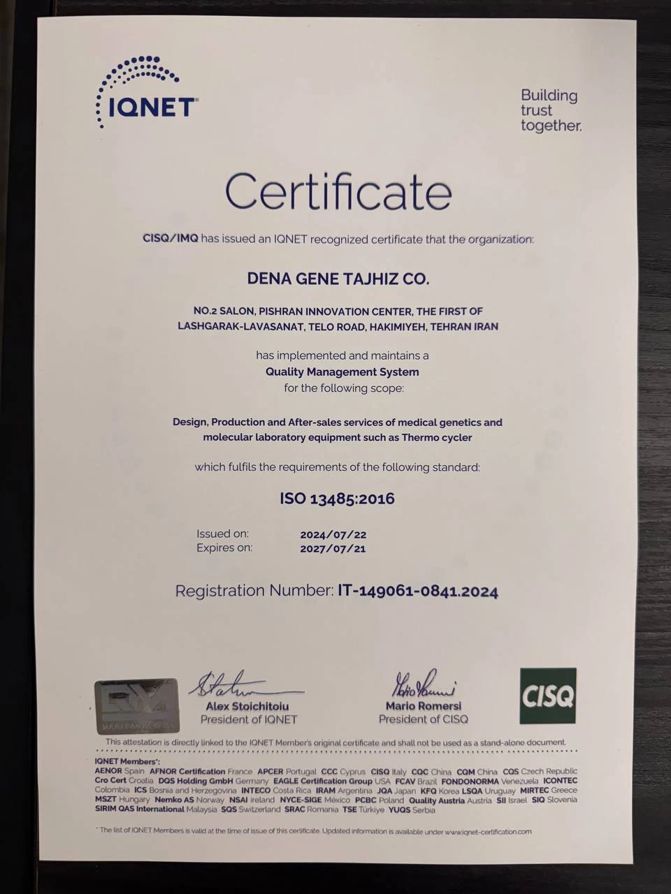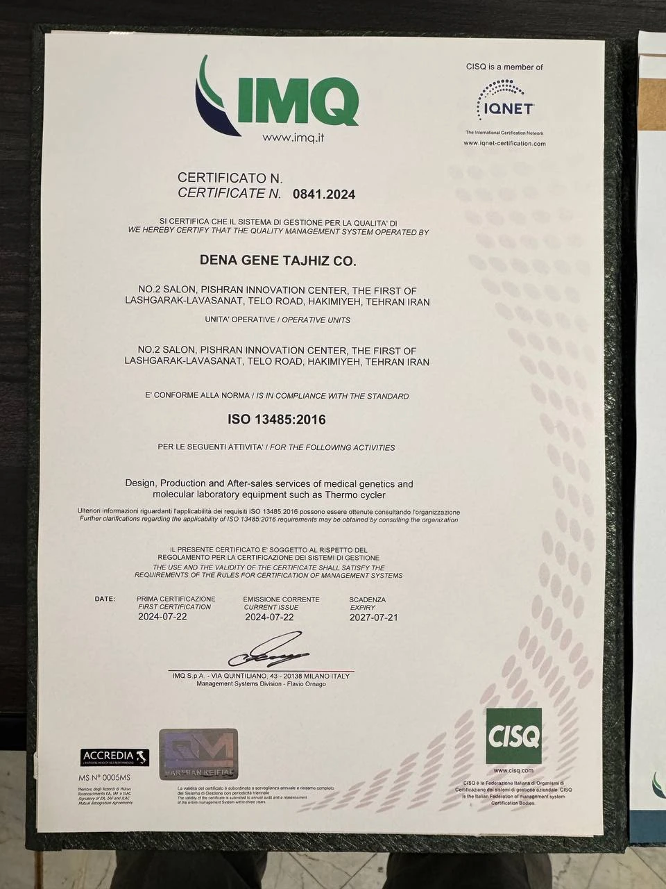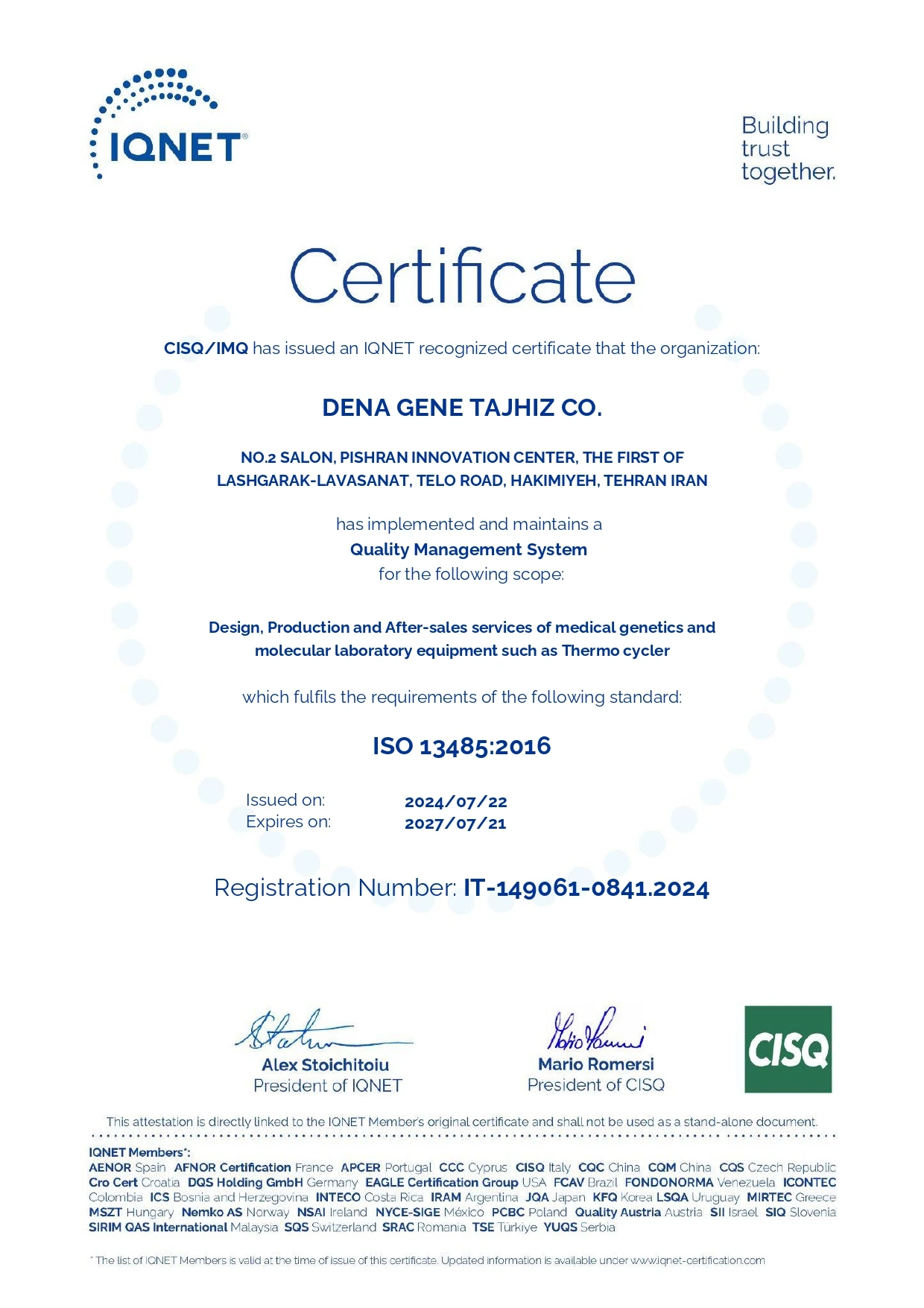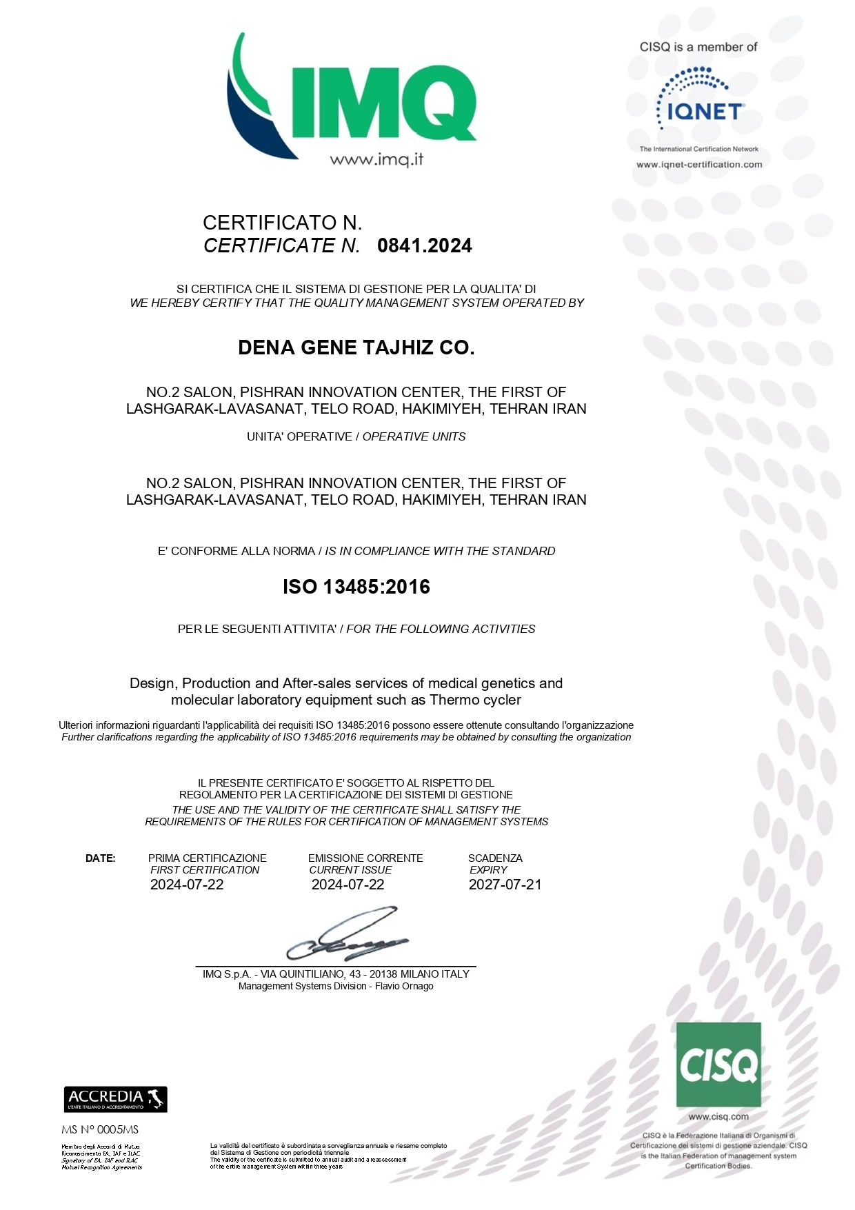 ISO 13485 Certificate
