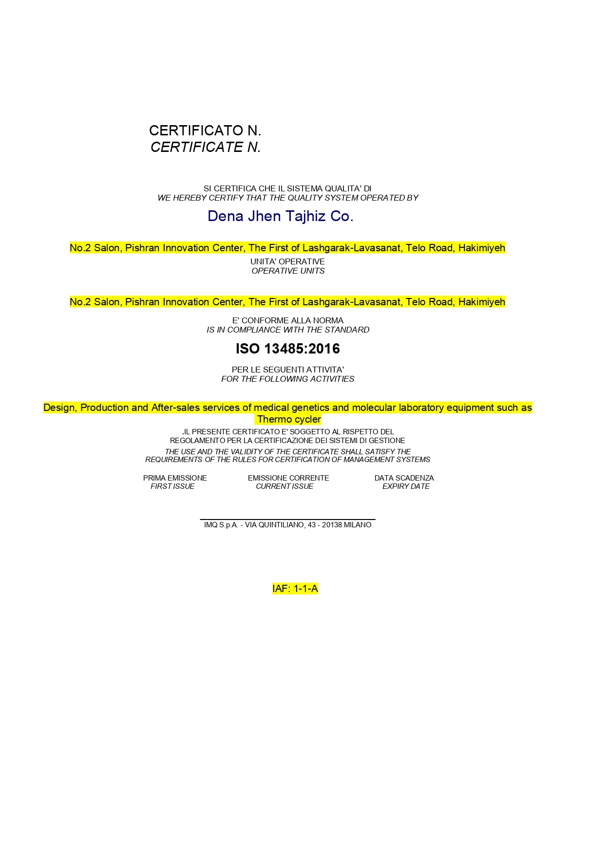 شرکت دناژن تجهیز به عنوان یکی از پیشگامان طراحی و تولید تجهیزات آزمایشگاهی، همواره در مسیر نوآوری و ارتقای کیفیت گام برداشته است. دریافت گواهینامههای معتبر ملی و بینالمللی، بیانگر پایبندی ما به استانداردهای جهانی، دقت در فرآیند تولید و تعهد به رضایت مشتریان است. این افتخارات نشان میدهد که محصولات ما نهتنها از نظر فنی و کیفی در بالاترین سطح قرار دارند، بلکه قابلیت رقابت در بازارهای جهانی را نیز دارا هستند.