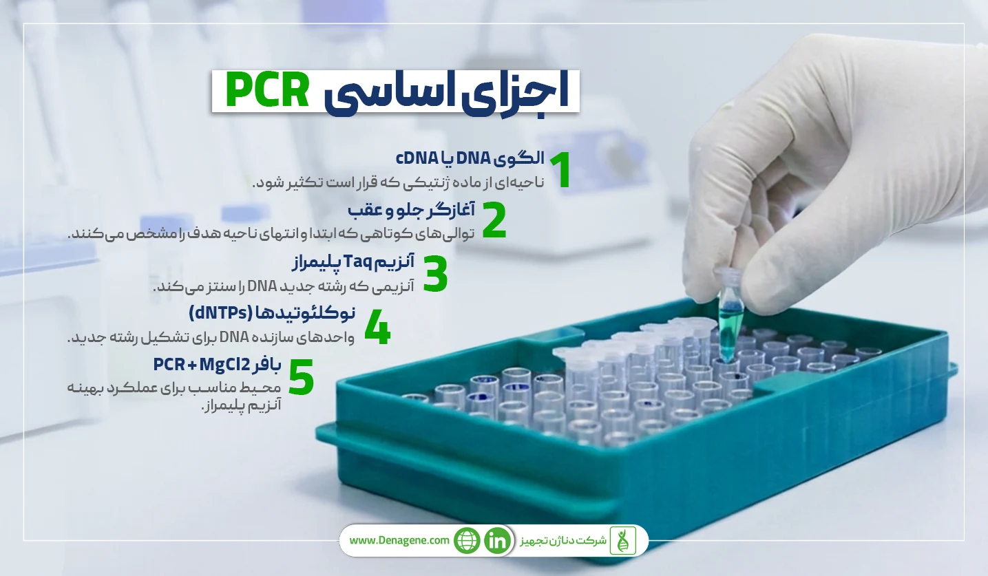 همان طور که در مقاله Polymerase Chain Reaction توضیح داده شده، برای انجام PCR به چند جز اساسی نیاز است که عبارت هستند از: